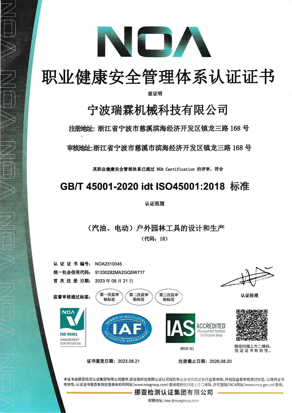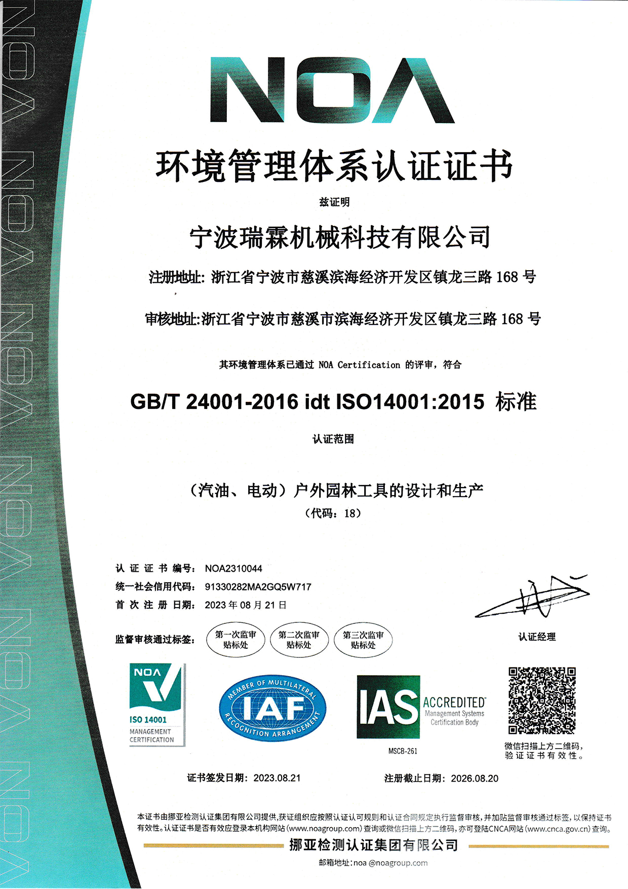宁波瑞霖机械科技有限公司(简称NGP)是ky平台的全资子公司,成立于2019年4月,位于浙江省慈溪滨海经济开发区镇龙三路168号,占地面积约50000平方米。公司拥有雄厚的技术力量和先进的生产设备,是行业内规模最大的企业之一。NGP集产品设计、开发、生产、销售和服务于一体,主要从事各类汽油、割草机、修枝机、打草机、链锯、吹风机等园林工具的设计研发和制造,产品远销欧洲、美洲、大洋洲等多个国家和地区,同时内销全国各地。作为国家知识产权优势企业,公司注重产品设计,并在此基础上采用先进的精益生产方式,以7S活动规范现场管理,以量身打造的ERP系统整合及有效利用企业资源,以ISO 9001:2015等标准来完善公司质量管理体系,并通过“GS”、“EMC”、“CE”、“UL”等认证来确保产品的安全性和可靠性,已取得各地区出口许可证和自营进出口权。